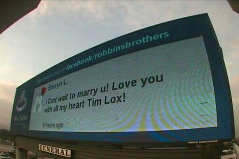 Once the love message has been submitted, a virtual billboard will appear on the author’s screen immediately, and within 24 to 48 hours the message will appear on the digital billboard for a total of 8 seconds. A photo will be instantly taken with the camera attached to the billboard and emailed to the author, who can then share it with loved ones on Facebook, other social networks or by email.