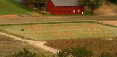 Who doesn’t love going to the pumpkin patch? Either choose to walk there (from a high up location) or find a way to fly over it. What she’ll see is a message spelled out in pumpkins sprawled across the field. Can you see it in this picture?