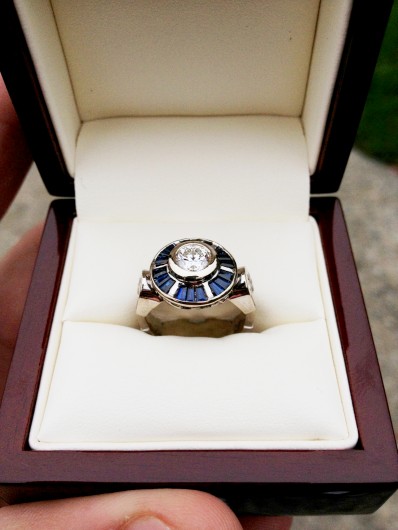 Take this guy for instance. Joe and his girl love Star Wars. So what better way than to incorporate their mutual interest by using it as a symbol for their love? He came up with a concept for the ring of her dreams that would be reflective of their love for Star Wars by modeling certain details on R2D2’s design. He took his idea to CustomMade.com, and they executed it in a way that was beyond what he had dreamed.