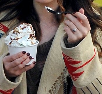 Looks like 90210 star Shenae Grimes got engaged to her male model boyfriend Josh Beech! Shenae is rocking a very special halo engagement ring. The couple have been dating since last spring, and Josh couldn’t wait to make their engagement official! Check out this close up of the ring. Could it be a halo with a black diamond or is it a sapphire?