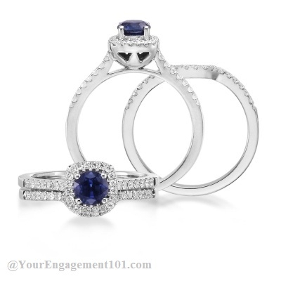 Looking for a similar style for less? Check out this sapphire set in a diamond halo setting. You can also switch it for any other color gemstone.