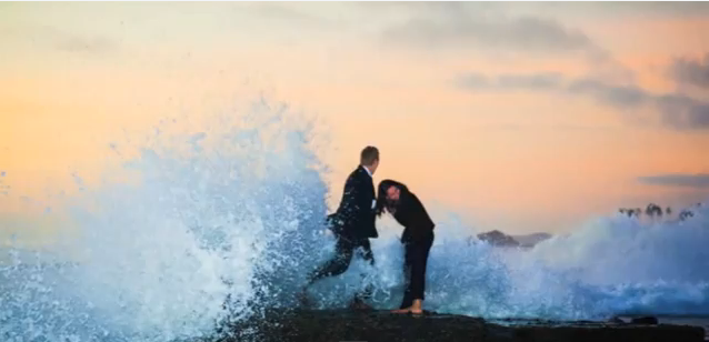 A huge wave came and knocked them both off their rock and back onto the beach. They were literally swept off their feet at the moment he asked her to marry him.