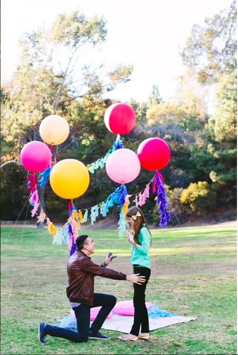 2. Plan a picnic. Looking for flowers may not quite be your thing, but what about going for a picnic? Take a bottle of champagne, some wonderful finger foods, and the best dessert– an engagement ring. Enjoy the sunshine, listen to the birds, maybe watch some ducks on the pond, soak in the spring. There’s nothing better than the first signs of spring, and it seems too perfect for a proposal. Want to “up” it one more? Plant some balloons where you intend to propose. Not only is this super sweet, but you can say you have a love like the couple in Disney Pixar’s Up, destined to be one for the ages.