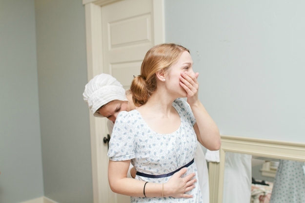 While she was surprised, it didn’t take Bethany long to catch on as her third sister dressed her in a Regency dress.
