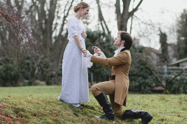 Bethany’s best friend and boyfriend of ten months, David, was hiding in a closet, waiting to make his debut as Mr. Darcy. He had taken the proposal scene straight from Pride and Prejudice. Bethany’s entire family was in on it, slowly joining as characters. Bethany couldn’t help but laugh off and on through it all, but apparently her family did a pretty good job at keeping in their respective roles.
