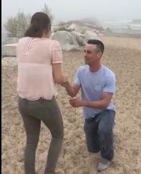 As she’s trying to capture the moment for them, Breanne’s mom keeps scurrying in and out of the frame thinking they’re taking a family picture. In her haste to move so the couple can get a “picture”, the mom face plants into the sand. While everyone (other than Bill and the filming sister) are worried about the mom and trying to make sure she’s ok, Bill drops to one knee. This only causes Breanne to laugh more when she realizes what’s happening.