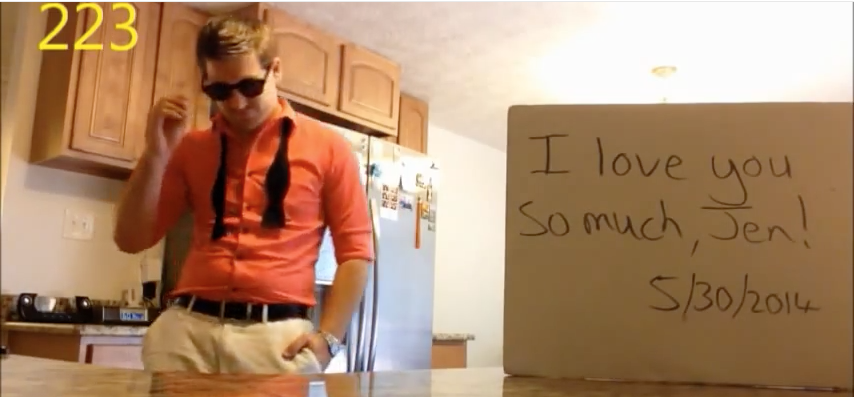 After having her family lead her to the beach, she was given a video to watch. The “countdown” to the proposal begins at 3:15 of the video. Dean committed to letting Jennifer know every day for a year just how much he loved her before he actually got down on one knee.