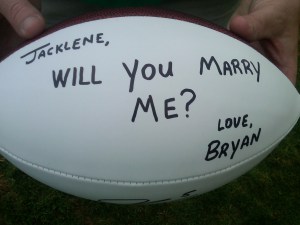 1. Have it signed. Very few people can say no to helping in a proposal. Send a football and a pleading letter to your favorite team and hope for the best. While you may have to wait a little longer, having a football that says “Will You Marry Me?” and is signed by some of your sweeties favorite players is worth it, don’t you think?