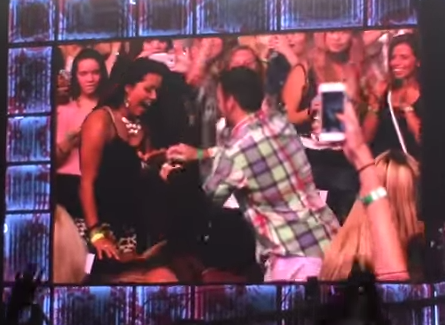 It’s easy to get the feel of this moment with all the screaming girls around. Odds are this guy wrote a dozen letters/emails/tweets to get the attention of the band to make his proposal to his girlfriend happen. You have to have lots of confidence do pull off a proposal like this, and I think it speaks even more that he took his girl to a One Direction concert.