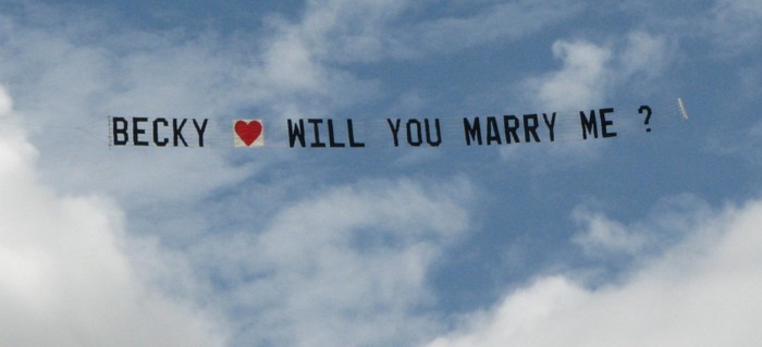 2. Say it in the sky. What’s above a billboard? Sky messages, of course! Whether you have someone write it in the sky or carry a message like this one, it’s hard to say no to something like this. Photo Credit: Sky-Ads