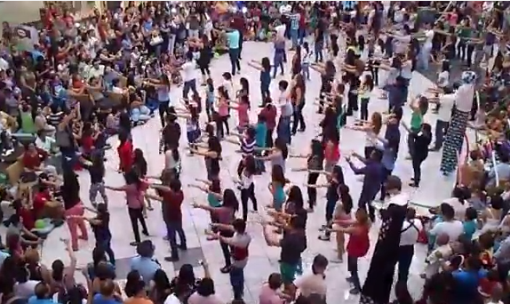 I want to know if the guys on stilts were really supposed to be part of the proposal or just a bonus. I mean, they seem to be moving with the flow, but they’re not really doing the moves. Can you imagine if they were doing everything the flashmobers were doing? Walking on those things is difficult enough, I suppose.
