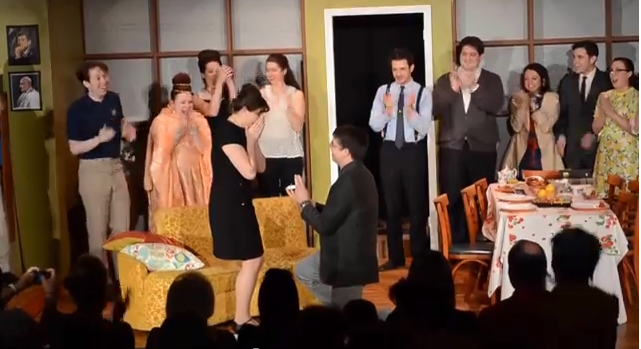 Mandy was staring as Charlotte Lucas in an adapted version of Pride & Prejudice through The Vintage Theatre in Scranton, PA, a sort of Jane Austen meets Mad Men take on the story set in the 1960s. On the last night, Brent decided the time was right and wanted to take advantage of the stage and the audience for his next big move.