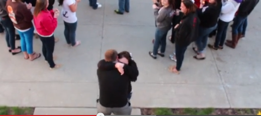 The proposal starts around 4:50, but you definitely want to see her reaction at 4:10 when she realizes her family has flown in from out of state. I have a feeling that’s when she starts to understand precisely what’s going on, although at the end of the proposal she’s still jumping up and down as if she had no idea (which is at 9:50).
