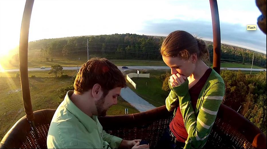 Basically, the company ApoteoSurprise will send up a weather balloon like device up into space with cameras filming your proposal message as it rises further and further into the atmosphere. Once it reaches a certain altitude, the balloon will explode, sending the equipment to the ground to be gathered later. When you play the tape for your sweetie, you’ll have some pretty awesome pictures of the proposal with even a shot of our planet in the background.