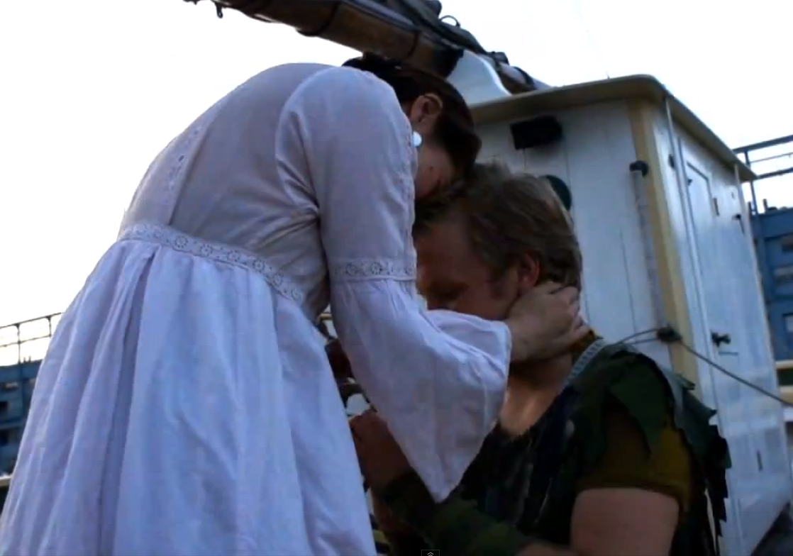 So, he decided to use this to his advantage. He rented a boat, flew in/bused in their closest family and friends and dawned his stage costume while hiding. She was brought to the boat by a friend and greeted by Captain Hook. The friend just happened to have a Wendy night gown for her to wear.