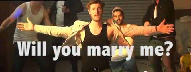 We’ve shared this one with you all before, but it’s so EPIC that it must be shared again in this top 5 list. Plus this is a great example of a dangerous proposal planned RIGHT. The guy nonchalantly makes it look like he fell off of a building (apparently traumatizing the love of your life is a trend?). However, it ends really cute. He lands in a big inflatable safety pad (important: SAFETY FIRST) and has signs that say “Will You Marry Me!” Of course his lady had a good laugh once she realized he wasn’t dead.