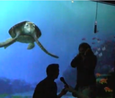 But then again, the fact that I can’t figure out how this guy pulled off such a cool proposal makes it that much cooler. How can you say no to a proposal when a huge, computer animated turtle is talking to you in real time? I thought this was equal parts cute and creative. You have to give it to the guy for reinventing the Disney proposal.
