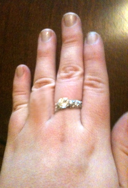 Your ring may be pretty, but it can also be a sparkly hazard. If you’re a hand talker or just plain accident prone, be more aware of your ring. It can easily scratch and even cut you, or worse– your fiance. I’m not going to lie, I have suffered some minor wounds from my own ring. My husband tries to stay clear of it when I start talking with my hands like the Italian that I am.