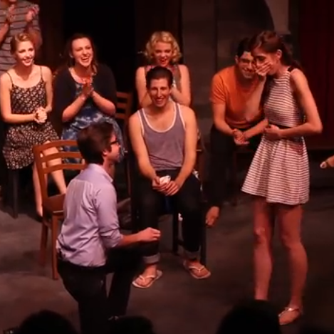 Nick and his girlfriend met in the drama department during college. So it’s no wonder that when he decided to propose, it had to involve the stage.