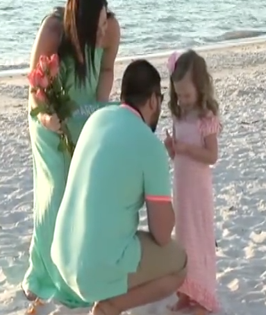 Carly and her beau met on Tinder, and since then it’s been history. This guy didn’t falter one bit when he knew that Carly had a daughter, Arianna, and when it came time to propose he knew that it was just as important to include her daughter as it was for him to ask her the big question.