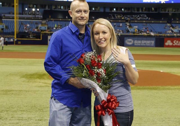 On Monday, May 11th of this year, Dohme was asked to throw the opening pitch for the Tampa Bay Rays to recognize her advocacy work. But she wasn’t expecting something a little more romantic. On the ball, Hill had written, “Will You Marry Me.” He had apparently been planning this surprise for a while, with the help of the Rays.