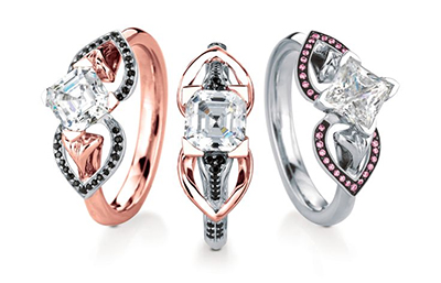 The Celtica collection features rare Scottish agates collected from the hills, lochs and beaches of Scotland. Each of the unique looking pieces of the collection bears the name of a Scottish castle. Because each agate is different, you’ll be sure to be the only one wearing it! Last, but not the least, color and black diamond options have been added to MaeVona’s line of engagement rings.