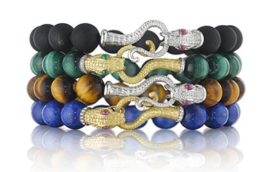 Love the snake bracelets with either gold or silver clasps with lots of colorful stone options.
