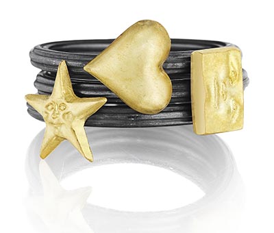 There are many ring options to stack or just pick as a promise ring in his new oxidized sterling collection with 18 K yellow gold motifs. Animals, hearts, skulls or signature moon faces, it’s really hard to pick a favorite.