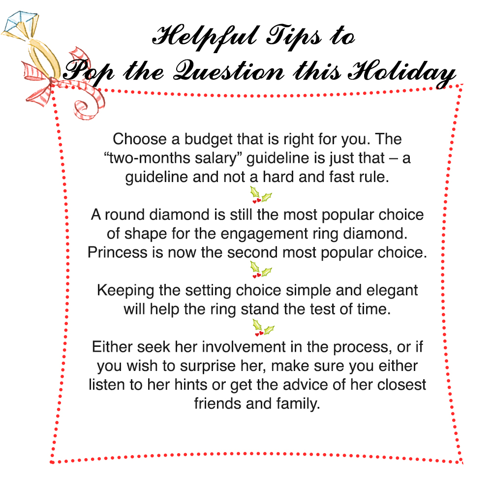 The holidays conjure up frosty scenes of crisp, icy-white clean landscapes. But there’s another type of “ice” that’s seen more often around holiday time. The diamond engagement ring! Did you know that 1/3 of all engagements happen during the frostiest months, from Thanksgiving to Valentines Day? Not only do diamond engagement rings become more predominant during the holidays, but diamond fashion jewelry, a preferred gift by many women also heads to the top of many gift wish-lists. This is the “ice” that many women look forward to seeing!