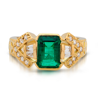 Takat explained that an emerald engagement ring not only allows couples the ability to set themselves apart, but it often allows couples to satisfy two of the most important quests when it comes to finding the perfect ring – symbolic meaning and proportion. Aside from being associated with the month of May, emerald is also known as the “gem of successful love” signifying unity, harmony, balance, contentment and unconditional love. It’s believed that giving an emerald gift creates a bridge between two people. This symbolism is very much aligned with the giving of an engagement ring and the hope for marriage that lasts a lifetime. Many women today also desire a more proportionate-sized engagement ring. An emerald center gem can often allow a couple to purchase a ring that is larger and more important looking than an all-diamond style.