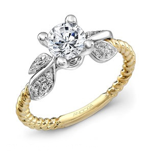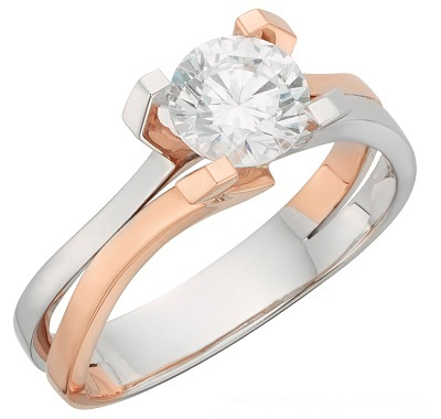 The trendiest touch of color comes in the form of two-tone rings, a carefully balanced combination of two shades of gold. This rose and white gold engagement ring by Phyllis Bergman is one cute choice among many options.