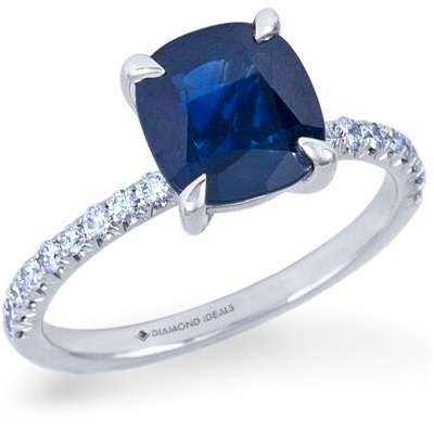 Color gemstones are a great alternative for an engagement ring and allows you to get a much bigger center stone for a similar budget. We love this blue sapphire engagement ring by Diamond Ideals.