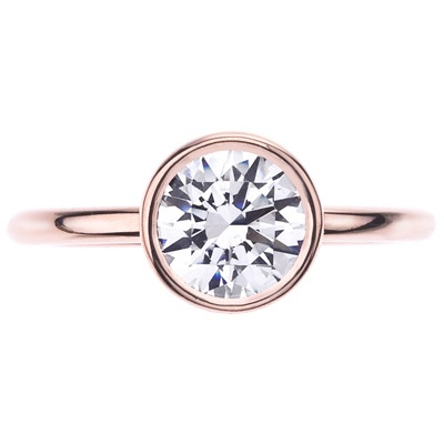 Choosing a metal such as rose gold can be a great way to bring a unique touch to a simple and elegant design such as this bezel engagement ring by Mark Patterson.
