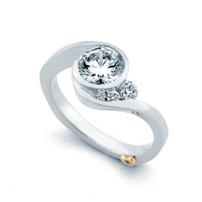 Above all, avoid little details on the setting that might get caught in fabrics or gloves while you work/survive the greatest adventure of all time. If you’re looking for a modern design, consider an engagement ring with smooth curves such as this one by Mark Schneider.