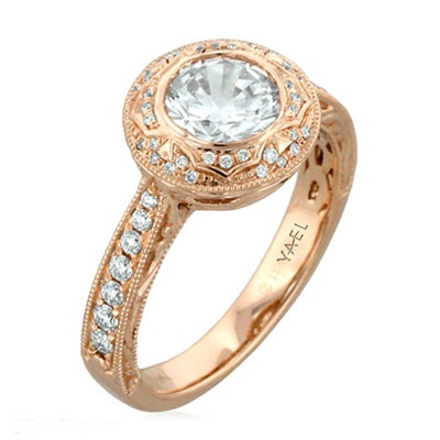 And for those of you who are dreaming of a vintage ring with a modern fit, this Yael Design rose gold treasure with intricate details and a bezel center stone might be what you’ve been looking for.