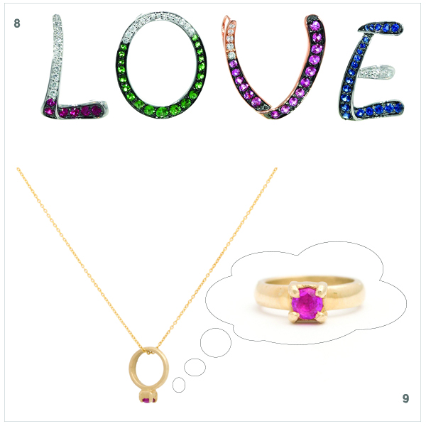 8 – These Davani Love Letters pendants look so hip and fun. You can pick your gemstone and spell his initial of yours. $899 each.