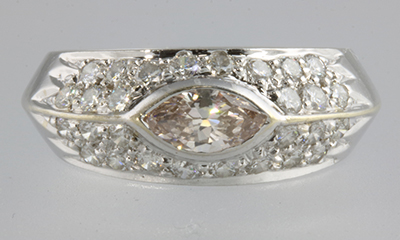 When Mark proposed he gave me an oval ruby and a few diamonds and told me to design my ring. Unfortunately the ring was stolen, I probably wore it for just a few months. Eventually Mark bought this marquise diamond with a pink overtone and told me again to design another engagement ring. I got upset at the setter for the way he finished the pave with the engraving but I still have it. I haven’t been able to wear it since I broke my finger. For our 10 year anniversary Mark gave me a 1.50 cts pear shape it was beautiful, I set it with ruby princess cut eventually I sold it to a customer who loved it and never bought another diamond. I love to stack bands, I have been doing it for 20 years. Once in a while I will wear an unusual stone that I would design for myself but again, I never keep them, my friends keep insisting on buying them from me.