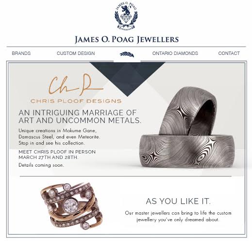 Ontario, Canada, Chris Ploof Engagement Ring Trunk Show at James O. Poag Jewellers