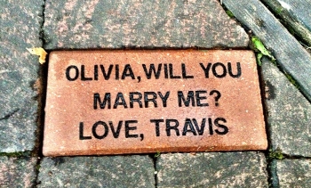Travis decided to propose to Olivia on their second anniversary. The beautiful park (Heritage Sandy Springs in Sandy Springs, GA) he picked for the proposal gave the option to engrave bricks and that’s exactly what he did!