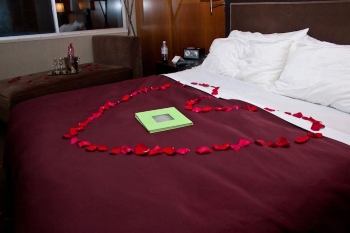 A Night to Remember: “When we went back to our hotel room, in the center of the bed, was a heart made out of rose petals with a book in the center. In the book, Dave had placed copies of all the notes he had sent me throughout the week with photos of the small gifts that went with them as a keepsake of our perfect day and perfect proposal!”