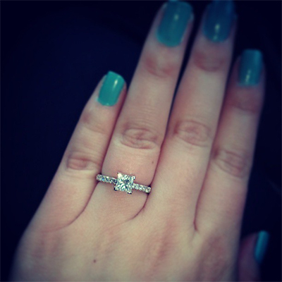 On a Saturday afternoon I was working (at the same hotel we met in). I heard his sister walk into my hotel singing “We Found Love in a Hopeless Place” and then out of nowhere ALL of our friends and family run in from all entrances singing and dancing around me! Afterwards Sean had a guitar playing and he sang to me, got down on one knee and asked for my hand in marriage!