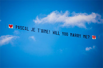 We are happy to announce that Don O’Neill, Creative Director of THEIA proposed to his partner, Pascal Guillermie, owner of floral boutique, Fleur De Pascal. While in Miami celebrating their 20th anniversary, Don arranged to have a plane fly by carrying a banner with the “question.” The couple are ecstatic about their engagement and are planning to have a ceremony both in New York, and in Don’s home of Ireland in 2014.