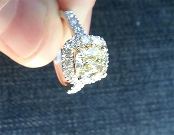 “he engagement ring is custom designed featuring 1.5 carat yellow canary diamond center. Since Chrissy is a manager in the jewelry industry I had to go all out!”