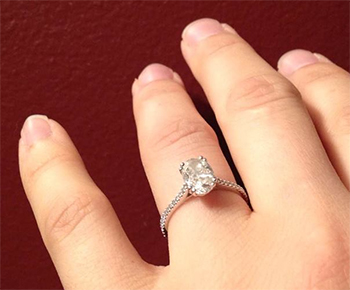 “My engagement ring is from Diamonds Direct, Austin TX. It is a 1.2 karat oval diamond ring.”