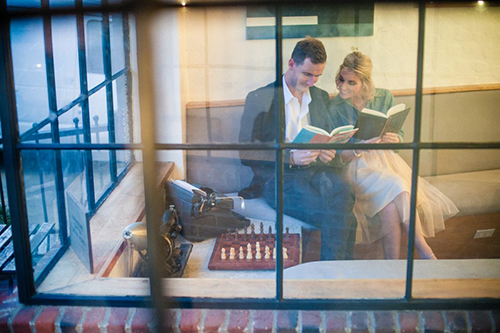 We knew we wanted locations with books because we love reading together. Then our photographer picked our locations based on the lighting.
