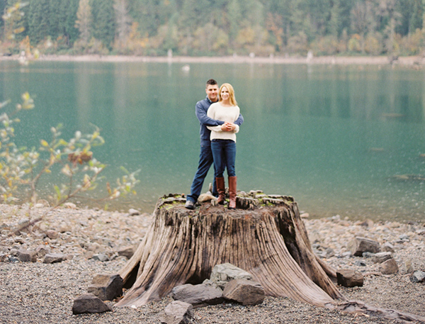Since we were new to living in the Washington State area, we wanted our engagement photos to capture the beauty of the Pacific Northwest. Brittany and Joe had shown us photos of Rattlesnake Lake during our consultation. We instantly liked the uniqueness of the tree stumps and the overall gorgeous scenery. I think I liked the fact that we had never been to Rattlesnake Lake before. So, we got to explore this gorgeous place together and have amazing photos to remember it by.