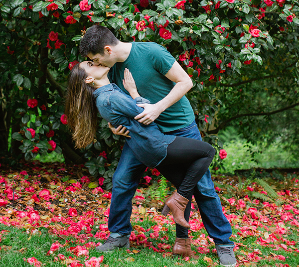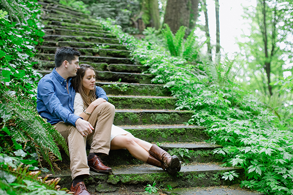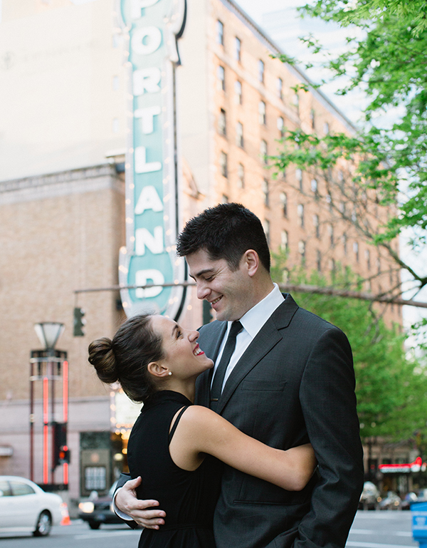 We knew our wedding would be in Denver since that is where Erica’s family is and it is where we met. However, Portland has become our own town where the two of us were able to start our relationship and where we got engaged. We wanted to have Portland be a part of the wedding in some way and the beauty of this city on a sunny day in the spring made an engagement photo session a perfect location. Our house is situated in the middle of a beautiful park so we were able to take the majority of pictures just by walking out of our front door. We also went downtown to take a few of what ended up being our favorite pictures, in front of a famous ‘Portland’ sign in the theater district.