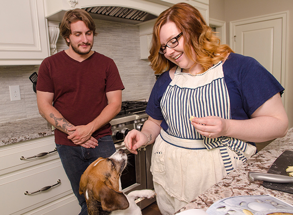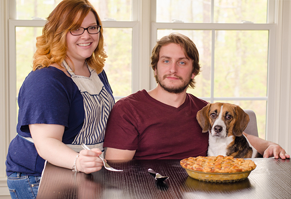 We met at a bible study for Young Adults. I was late getting there, and ended up sitting directly across the room from him. I had been coming to the group for a few months, so it was very obvious when there was someone new in the group. I couldn’t keep my eyes off of him. Shortly after he started coming to group, he revealed that his birthday was coming up. Since I sell cupcakes as a hobby, I asked him what kind he would like for me to bring. He said he was much more of a pie person. So I baked him a homemade apple pie. He ended up eating the entire thing within 24hrs of receiving it. He jokes with people and tells them that’s why he’s marrying me.