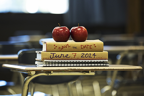 Derek and I chose Tanya to be our photographer from the beginning because we wanted to stay as far away as possible from the “traditional” engagement and wedding photos. We loved the candidness of her style and the fact that the people she captured looked real. With that said, we wanted to pick a setting for our engagement photos that was real to us, and really portrayed who we were as a couple. Due to the fact that we met in High School, and Derek is now a High School teacher, there was no better place to tell our story than at a high school !