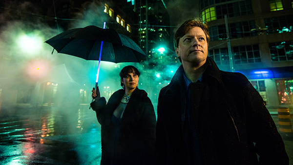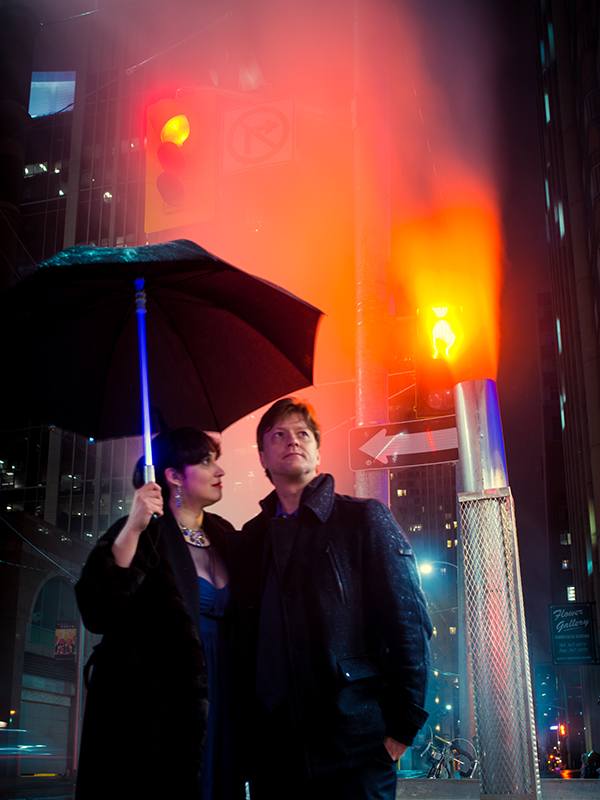 Everything about the “set” was perfect – it was a cold and rainy night in March. The vents were spewing steam – capturing and diffusing the medley of street lights and signs. The wet tarmac was great, too. Ken, Paul, his assistant Neil and I raced around the downtown core from 10 at night until about 1 in the morning. It really felt like we were creating something memorable and cinematic.